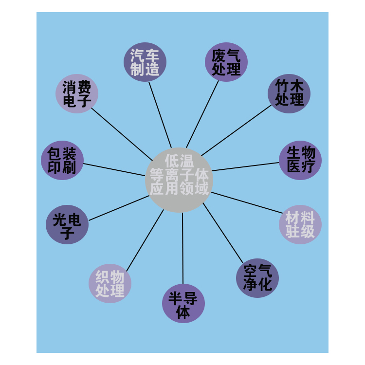 (幾個(gè)至十幾電子伏特),完全可以破裂有機(jī)大分子的化學(xué)鍵而形成新鍵;但遠(yuǎn)低于高能放射性射線,只涉及材料表面,不影響基體的性能。處于非熱力學(xué)平衡狀態(tài)下的低溫等離子體中,
